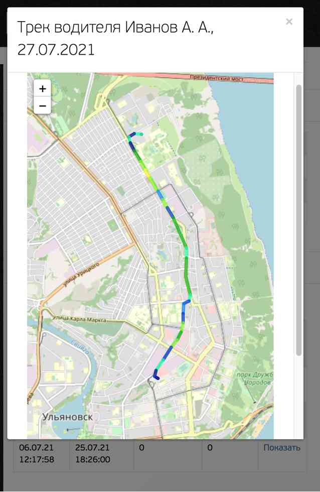 Руководитель может просматривать всех сотрудников на карте как в данный момент так и историю передвижений за день, неделю, и так далее с полным подсчетом километража