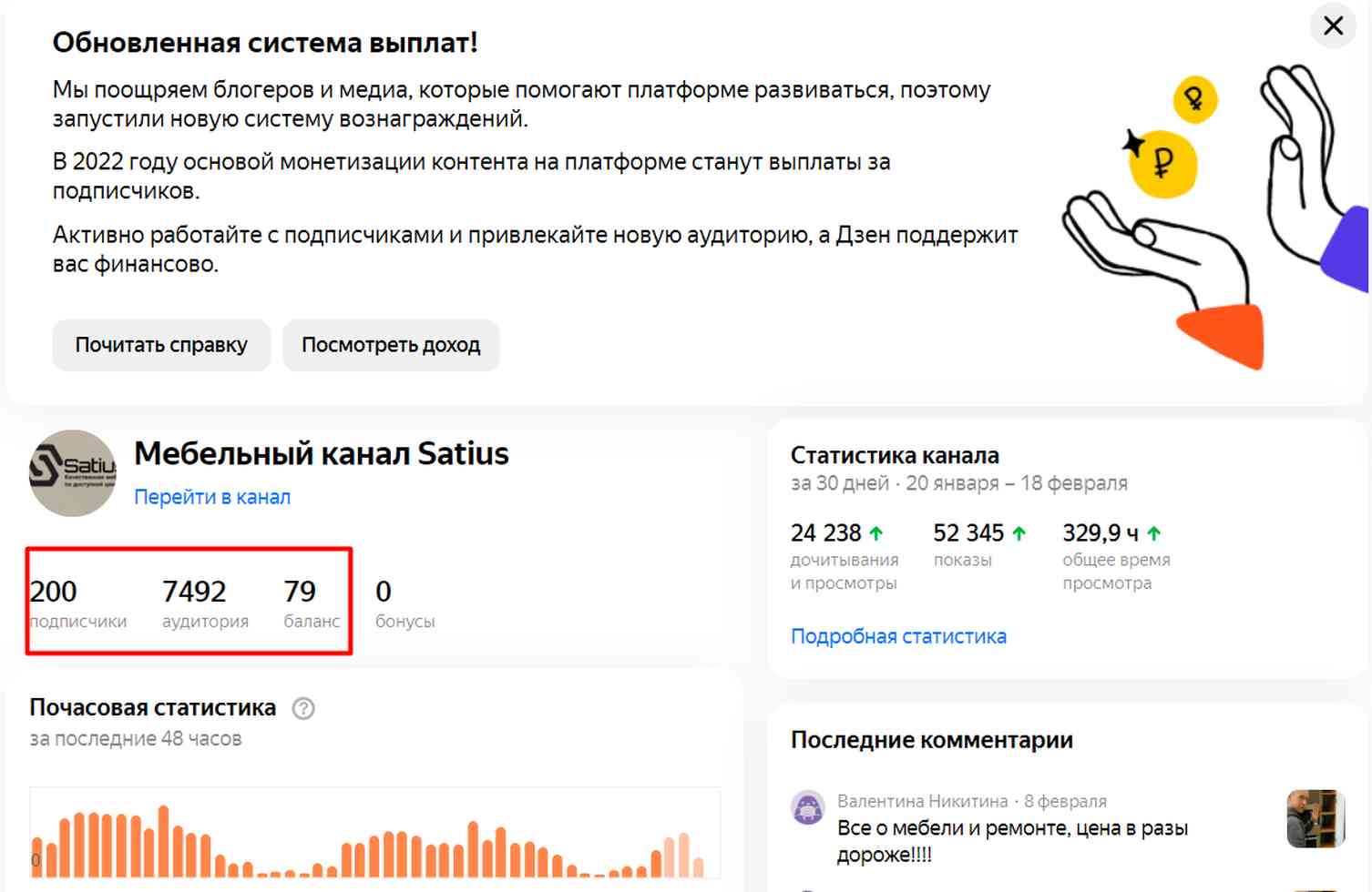Ниже оптимальной продавать не будем. Доход идет, если что, просто будем размещать контент, в один месяц доход был 2 700, если заняться, за год можно ежемесячно выводить до 5000 - 15000 руб. А это уже больше суммы продажи, поэтому, мы не торопимся. Есть ли/были ли страйки (предупреждения) Нет Причина продажи Сменили направление + нет времени. Вместе с каналом передается Сайт (домен и хостинг переоформим на вас).